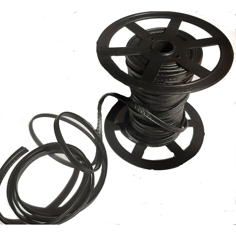 Pasek skaj matowy, zaprasowany w połowie-dodatkowo niewykończone brzegi schowane do środka a bokiem przeszyty stębnówką. Szerokość paska po uszyciu to 5-6 mm. Używany jako troczki, wiązania np.do sukien wieczorowych lub jako inne wykończenia w odzieży. Pasek ze skaju matowy można uszyć również na lewą stronę,aby uzyskać matowy efekt.